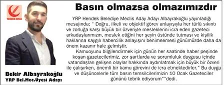 YRP Meclis Aday Adayı Albayrakoğlu 10 Ocak Gazeteciler gününü kutladı.