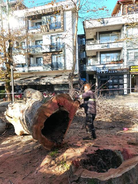 Ekip başı belediye personeli budama ve çürüyen ağaçların Orman İşletme Müdürlüğünde kayıtlı ağaçlardan olmadığının altını çizerek; " vatandaşın can ve mal emniyetine zarar vereceğini düşündüğümüz bir kısım ağaçları budayarak bir kısmını da kökünden kesmek sureti ile