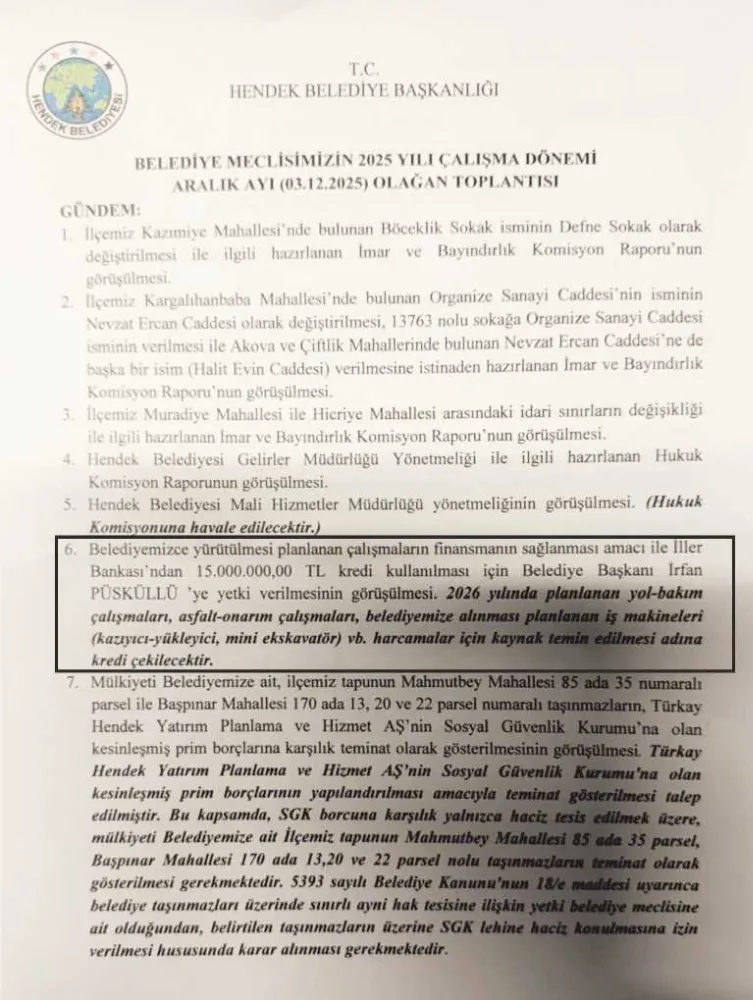 2025 ayı olağan Aralık ayı meclis toplantısı öncesinde olduğu gibi gündem maddeleri 2-3 gün öncesinden bütün meclis üyelerine gönderilmektedir.