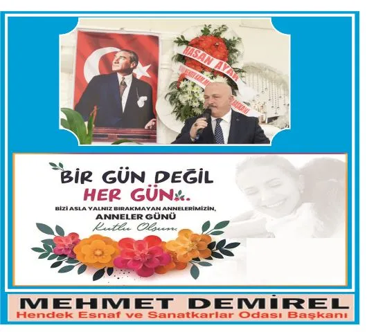 Hendek Esnaf Sanatkarlar odası ve Esnaf Kefalet Kredi Kooperatifi Başkanı Mehmet Demirel anneler gününü kutladı