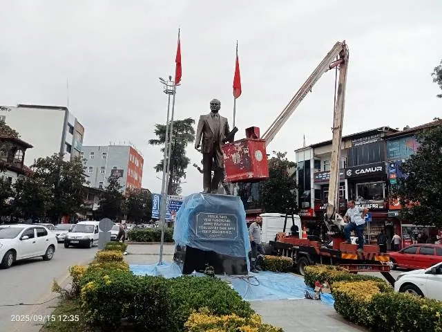 Uzun yıllardır sadece yıkamak sureti ile tozu alınan, ilçemiz Cumhuriyet alanında bulunan Türkiye Cumhuriyeti'nin kurucusu