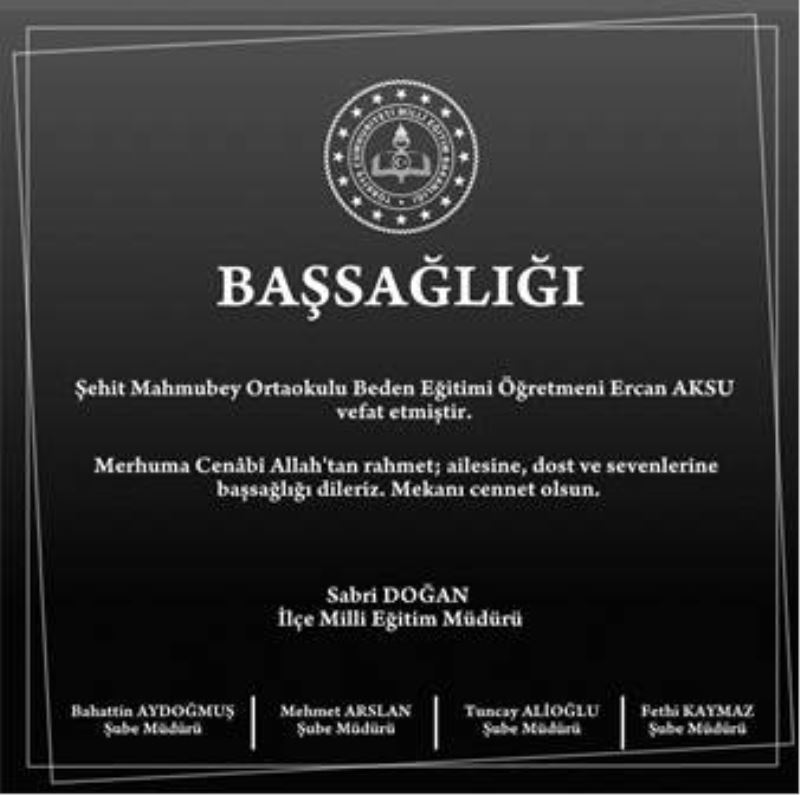 İlçemiz Milli Eğitim Müdürü Sabri Doğan, eğitim ordusundan bir meslektaşlarını kaybetmenin acısını şu sözlerle paylaştı.