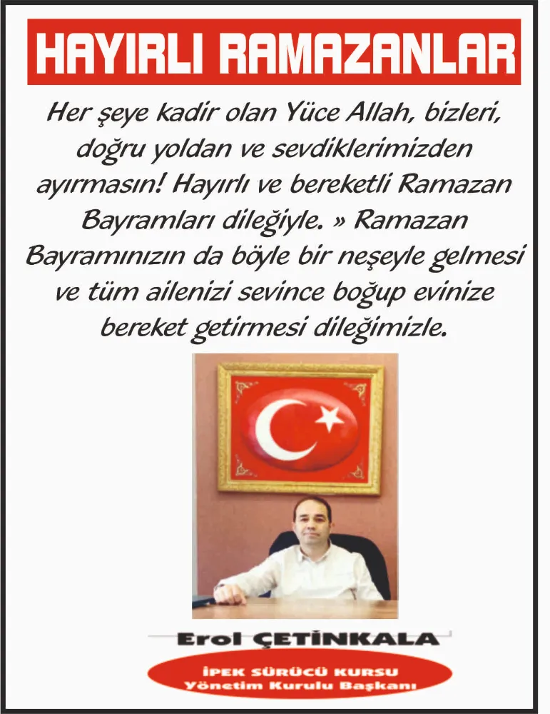 İPEK sürücü Kursu Yönetim Kurulu Başkanı , İş insanı Erol Çetinkala İslam Aleminin Ramazan ayını tebrik etti.