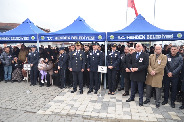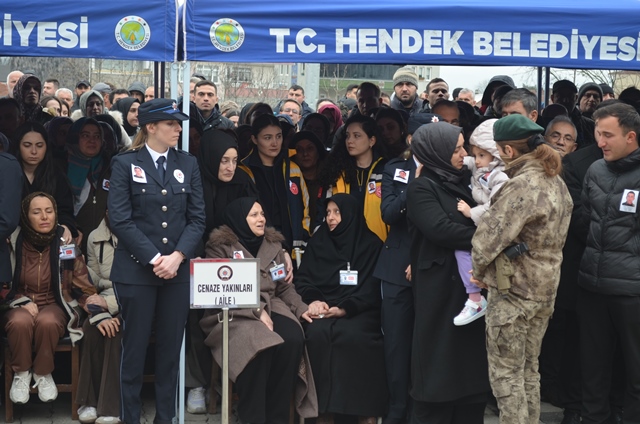Törene protokol üyelerinin yanı sıra polis memurunun annesi, ailesi, yetim kalan kızı ile birlikte aile yakınlarıyla birlikte ilçe halkı katıldı.