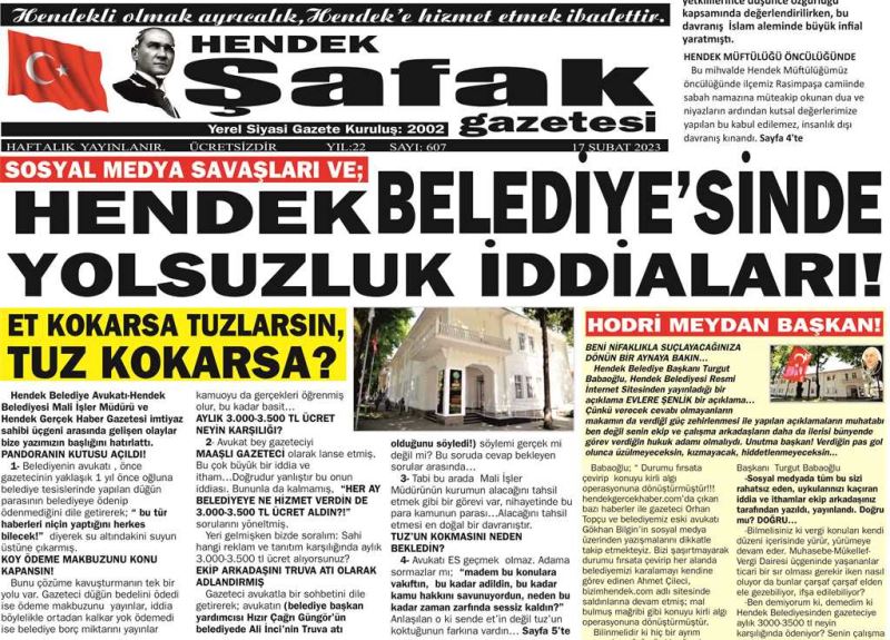 Gazeteniz Hendek Şafak'ın 607. ci sayısı yarın okuyucusu ile buluşuyor. Gazeteniz Hendek Şafak'ı yarın bayinizden ya da dağıtım elemanlarımızdan ÜCRETSİZ olarak almayı lütfen UNUTMAYINIZ.