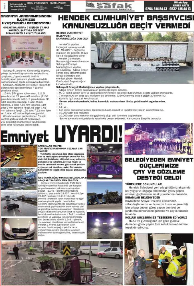 DOLU DOLU HABER... Gazeteniz Hendek Şafak çıktı. Yarın bayinizden ve dağıtım elemanlarımızdan ÜCRETSİZ olarak almayı lütfen UNUTMAYINIZ.