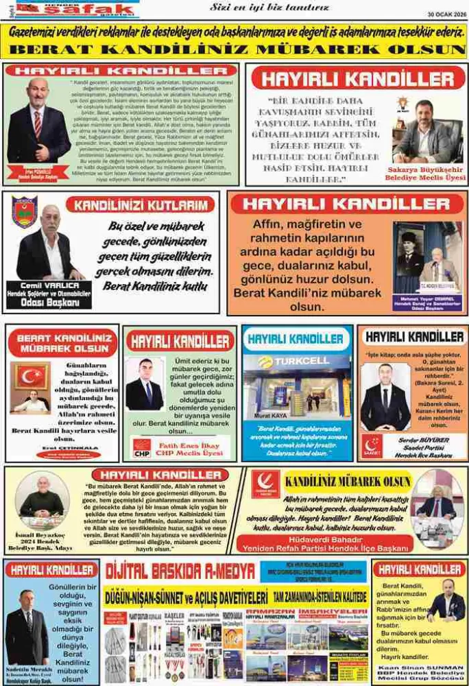 Gazeteniz Hendek Şafak yine haber dolu… Ramazan İmsakiyesi hediyeli…