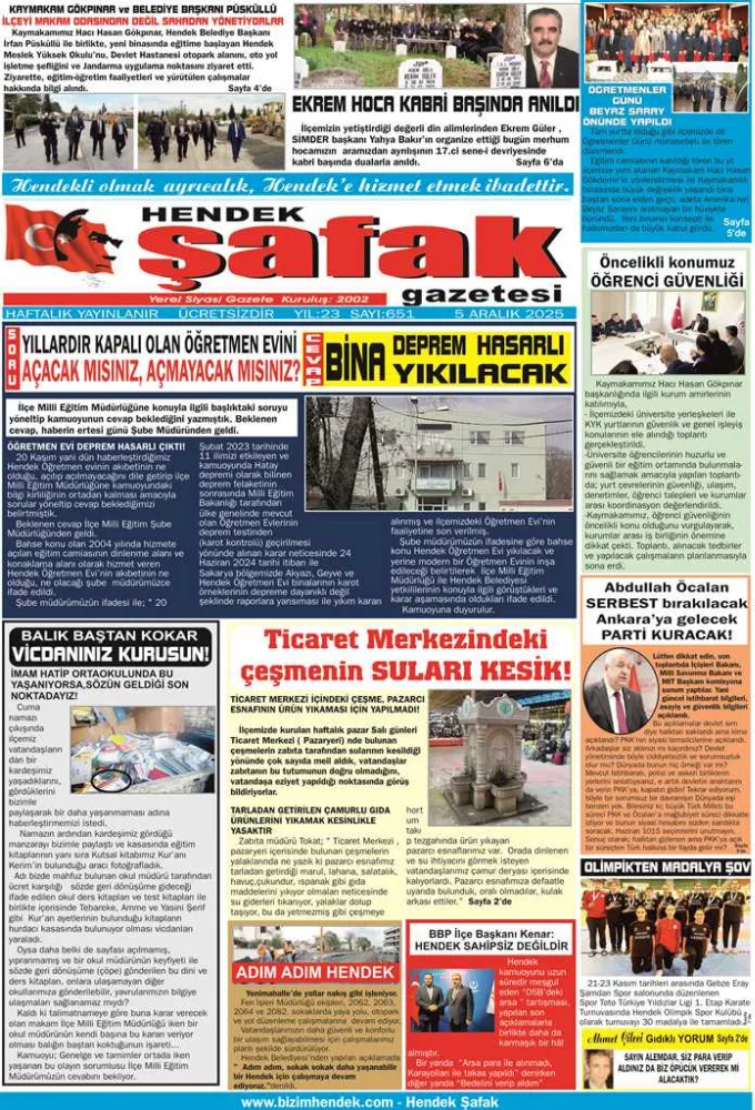 Yine zengin içerik yine haber kuşağı. Gazeteniz Hendek Şafak'ı Cuma günü dağıtım elemanlarımızdan ve bayinizden ÜCRETSİZ olarak almayı lütfen UNUTMAYINIZ.