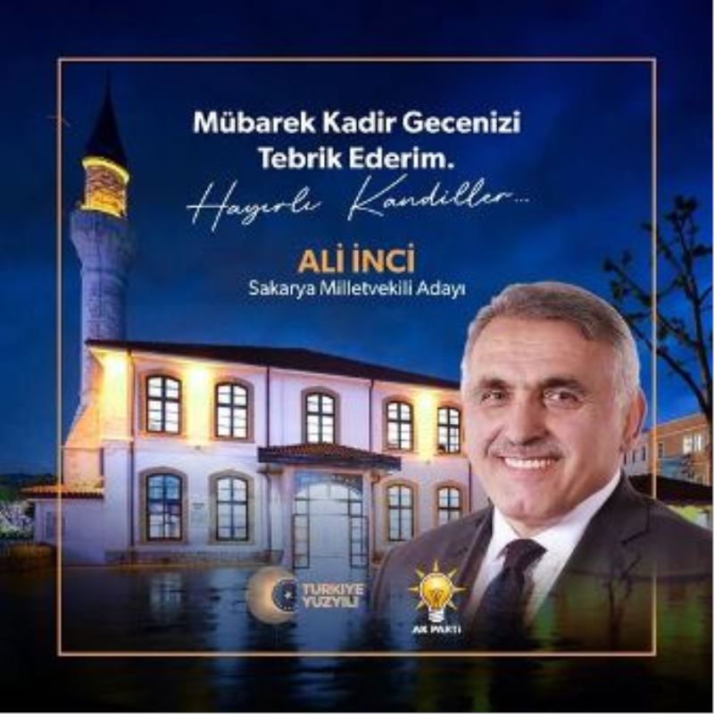 28. Dönem Sakarya Milletvekili adayı Ali İnci, sosyal medya hesabı üzerinden yayınladığı mesajında İslam Aleminin mübarek Kadir Gecesini kutladı.