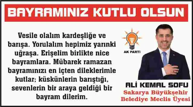 Önceki dönem Belediye Başkan adayı Ali Kemal Sofu Ramazan Bayramı kutlama mesajı yayınladı.