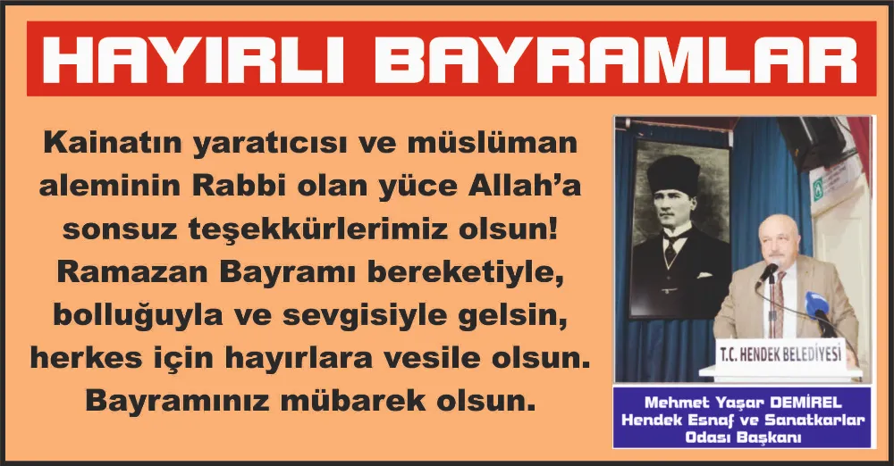 Hendek esnaf ve Sanatkarlar Odası Başkanı Mehmet Demirel bayram mesajı yayınladı.