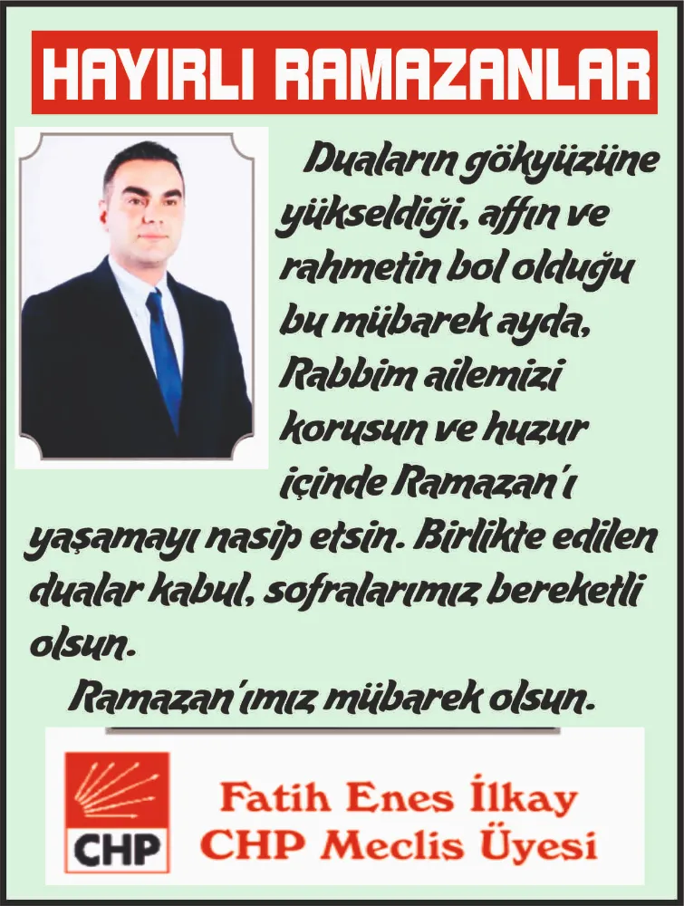 CHP Sakarya Büyükşehir Belediye Meclis Üyesi Fatih Enes İlkay İslam Alemine Ramazan ayının hayırlar getirmesi temennisinde bulundu.
