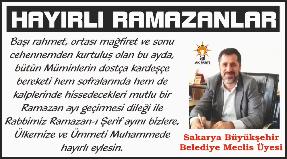 Uzun yıllar Hendek AK Parti İlçe Başkanlığı yapan, Sakarya Büyükşehir Belediye Meclis Üyesi ve İş insanı Ali Kemal Sofu İslam Aleminin Ramazan ayını tebrik etti.