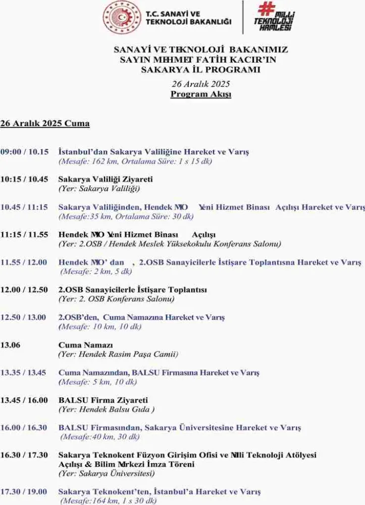 San. ve Tekn. Bakanı M.F. Kacır yarın ilçemize geliyor. Sakarya Valiliğini ziyaretinin adından ilçemize gelerek bir dizi programlara katılacak. Bakan Kacır ve beraberindekiler Cuma namazını Rasimpaşa Külliyesinde eda edecekler.
