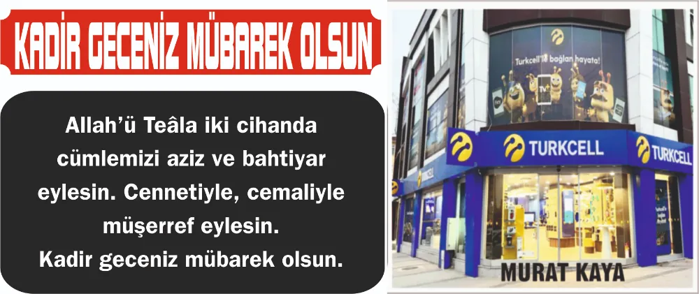 İlçemiz esnaflarından Turkcell bayii Murat Kaya, Kadir Gecesi mesajı yayınladı.