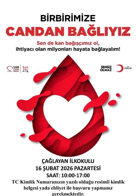 16 Şubat Pazartesi günü saat 10.00 ile 17.00 saatleri arasında Çağlayan mahallesinde Çağlayan İlkokulunda KAN BAĞIŞI KAMPANYASI düzenlenecektir. Halkımızın bilgisine sunulur.