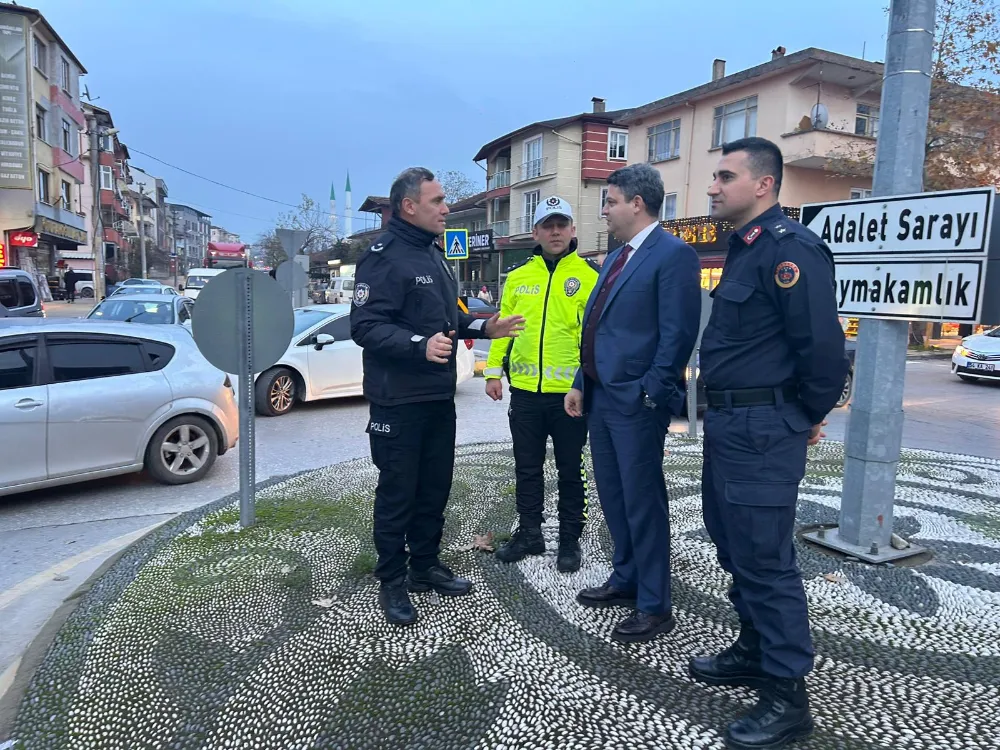 Kaymakam Gökpınar yoğun mesai harcayan trafik ekiplerine teşekkür etti ve görevlerinde başarılar dileyerek farklı bölgelerde incelemelerini sürdürdü.