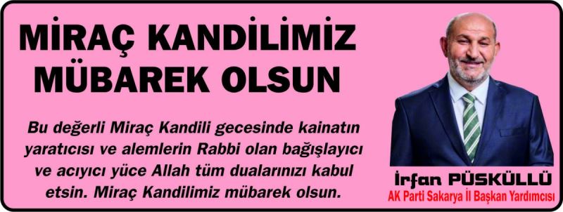 Hendek eski belediye başkanı ve Sakarya AK Parti il başkan yardımcısı İrfan Püsküllü yayınladığı mesajla İslam aleminin miraç kandilini tebrik etti.
