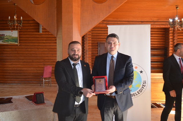Hacı Hasan Gökpınar ve Hendek Belediye Başkan Yardımcısı Hasan Altuntaş tarafından plaket takdim edildi.