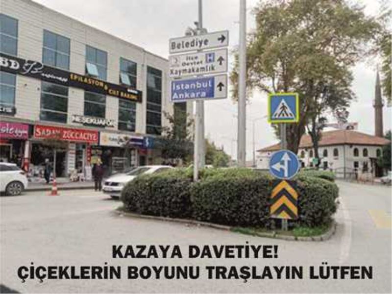 İlçemiz Cumhuriyet meydanında orta refüjde bulunan çiçeklerin yüksekliğinden dolayı karşı yönden beri yöne geçen araçlar sağ taraflarını göremiyorlar.