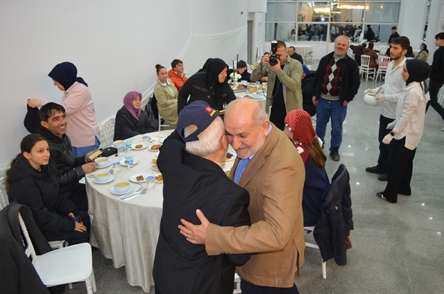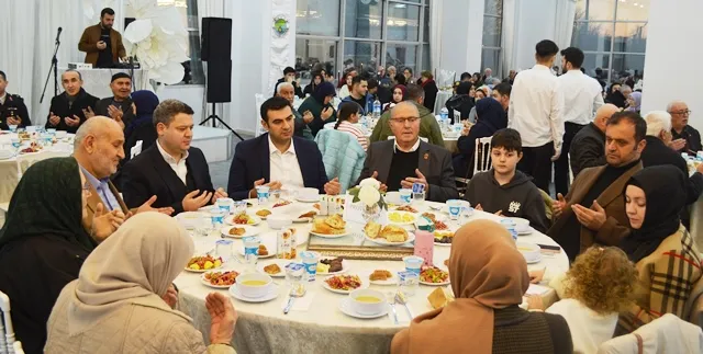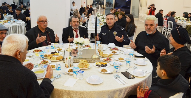 İftar öncesi geceye katılan şehit yakını ve ailelerinin masasını tek tek dolaşarak hoş geldiniz diyerek kucak açan Kaymakam Gökpınar ve Belediye Başkanı Püsküllü , ilçe müftüsü Hasan Sağlam'ın okuduğu iftar duasına amin diyerek şehit ailesi yakınlarının bulunduğu masada iftarını açtılar.