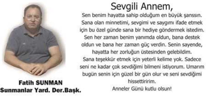 Sunmanlar Yardımlaşma Derneği Başkanı Fatih Sunman anneler gününü kutladı