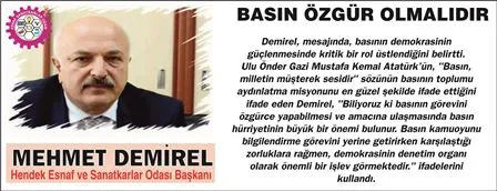 Hendek Esnaf ve Sanatkarlar odası Başkanı Demirel, yayınladığı mesajında,