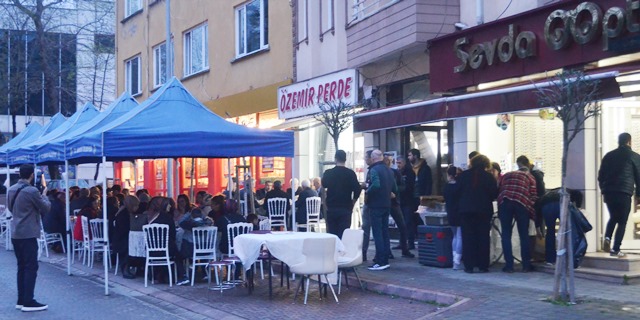 İftar yemeklerinin sofralara görevlilerce getirilmesine rağmen başkan adayı Püsküllü, bizzat karavananın başına giderek yemeğini alma nezaketi davetlilerin dikkatinden kaçmadı.