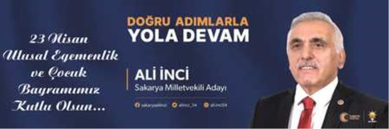 28. Dönem Sakarya AK Parti Milletvekili Ali İnci, yayınladığı mesaj ile 23 Nisan Ulusal egemenlik ve Çocuk Bayramını kutladı.