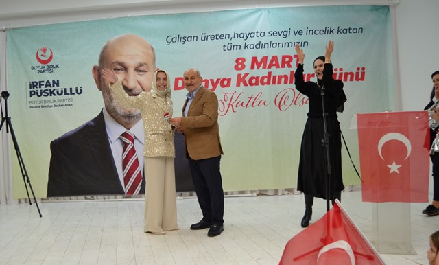 Büyük Birlik Partisi Hendek Kadın Kolları Başkanlığının tertip ettiği 8 Mart Dünya Kadınlar Günü'ne özel düzenlenen program güne damgasını vurdu. Hendekli hanımlar düzenlenen programa yoğun ilgi gösterdi. Adeta salon, iğne atsan yere düşmeyecek şekilde idi.