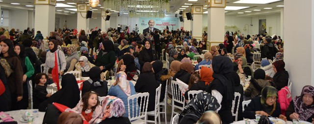 Yoğun bir kalabalık nedeniyle salona zor giren Püsküllü, "Kadınlar Günü'nüz kutlu olsun" diyerek, konuşmasına başladı. Püsküllü, "Bugün, 8 Mart Dünya Kadınlar Günü. Yani sizin gününüz. Kendi gününüzde bu salonu tıka basa dolduran bütün hanım kardeşlerime, ablalarıma, büyüklerime teşekkür ediyorum. Hepinizden Allah razı olsun. Bugün buradaki kalabalık, Allah'ın izniyle 31 Mart'ta emeklerimizin karşılığı olacak. İnşallah o gün sandıkta emeklerimizin karşılığını sizlerin çalışmasıyla alacağız. Sizlerden Allah razı olsun. Allah'ım bizleri mahcup etmesin" şeklinde konuştu.