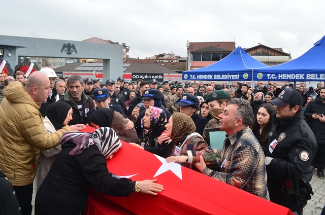 Dualar esnasında polis memurumuzun annesi, eşi ve yavrusu tabuta sarılarak ağıt yakmaları törene katılanları göz yaşlarına boğdu.