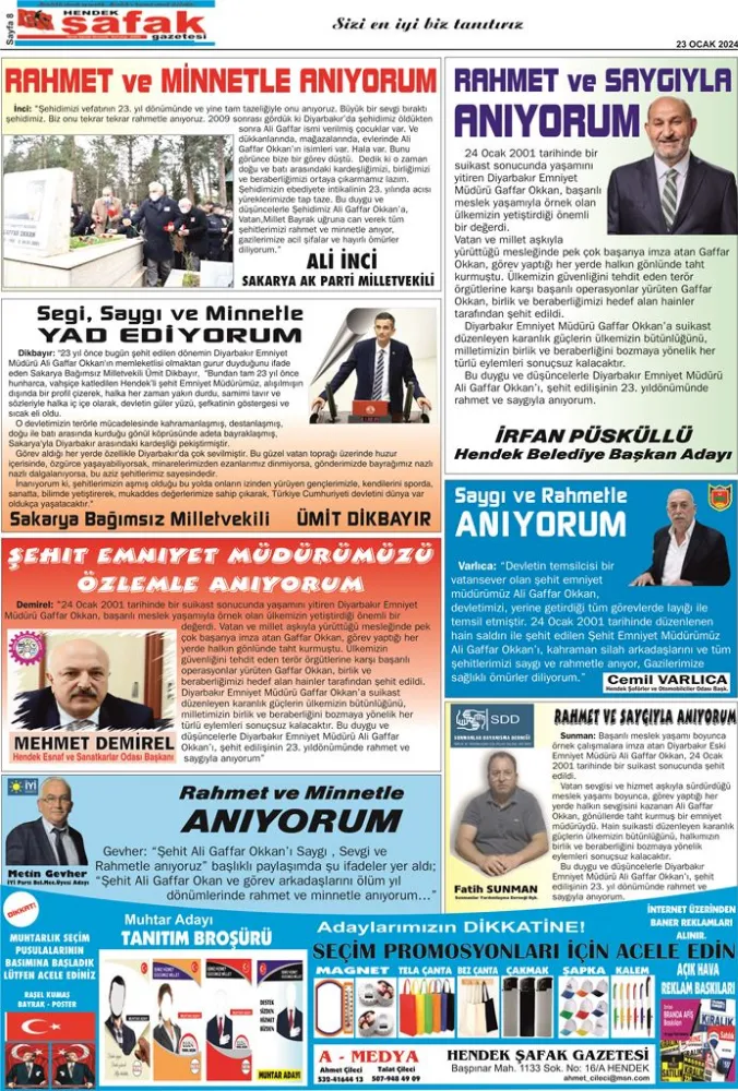 GAZETENİZ HENDEK ŞAFAK PERŞEMBE (AREFE) GÜNÜ ÇIKIYOR