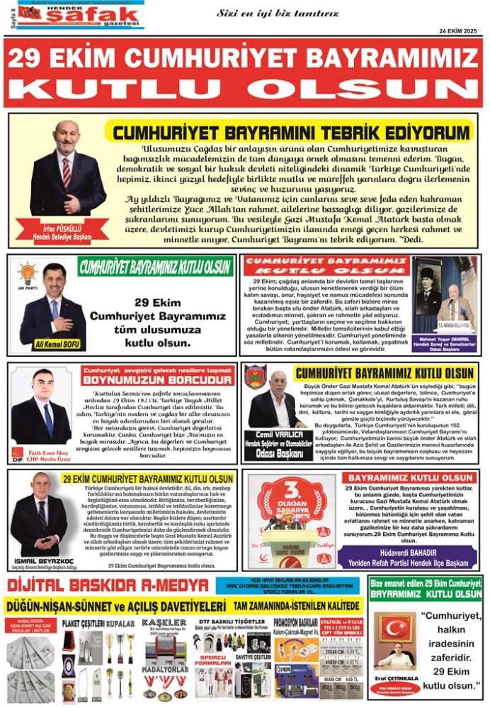 Gazeteniz Hendek Şafak'ı yarın dağıtım elemanlarımızdan ve bayinizden ÜCRETSİZ olarak almayı lütfen UNUTMAYINIZ.