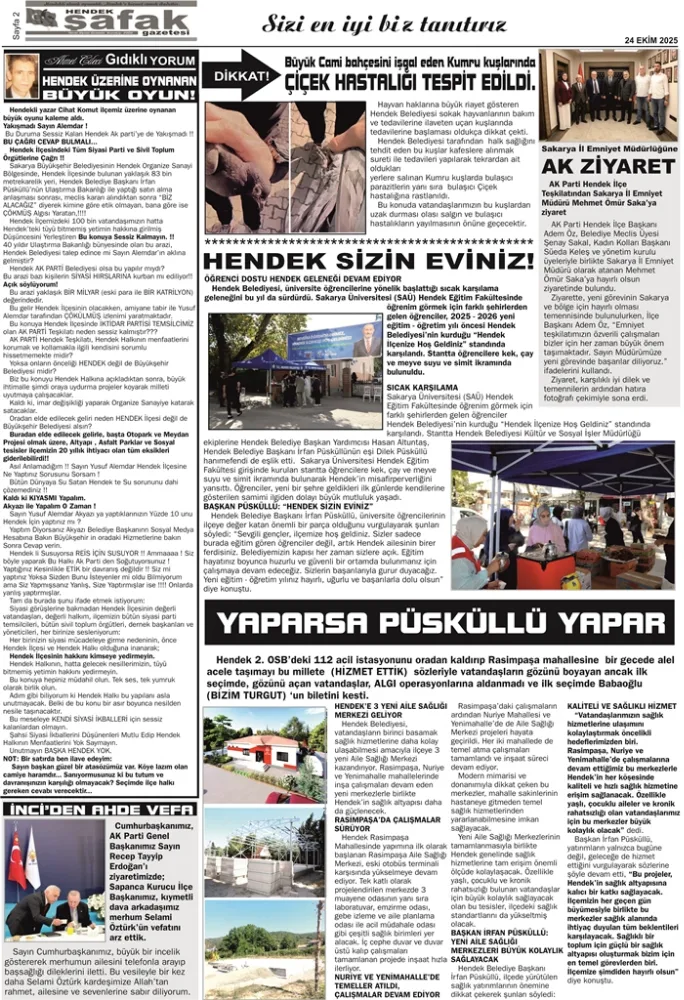Gazeteniz Hendek Şafak yine dolu dolu…
