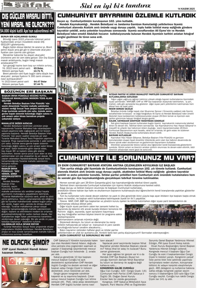 GAZETENİZ HENDEK ŞAFAK ÇIKTI