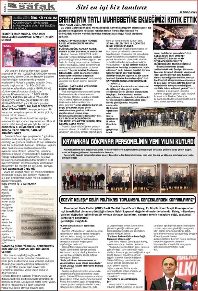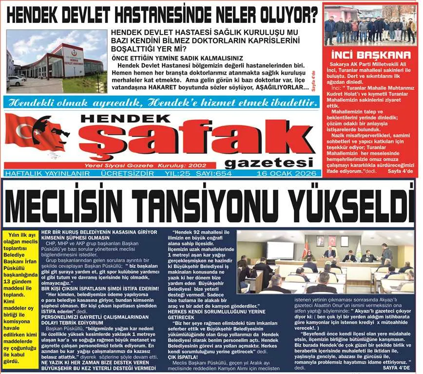 DOLU DOLU HABER... Gazeteniz Hendek Şafak çıktı. Yarın bayinizden ve dağıtım elemanlarımızdan ÜCRETSİZ olarak almayı lütfen UNUTMAYINIZ.