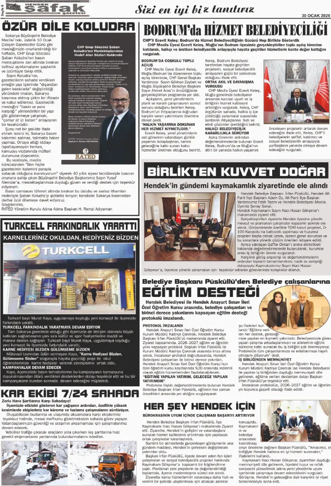 Gazeteniz Hendek Şafak yine haber dolu… Ramazan İmsakiyesi hediyeli…