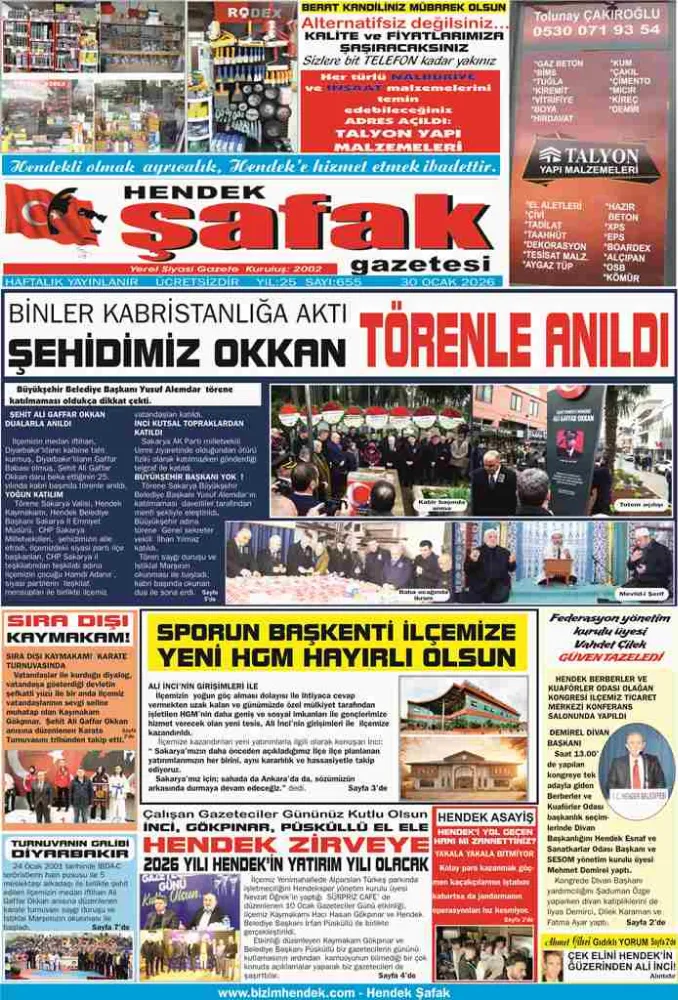Gazeteniz Hendek Şafak'ı yarın bayinizden ve dağıtım elemanlarımızdan ÜCRETSİZ olarak almayı lütfen UNUTMAYINIZ.