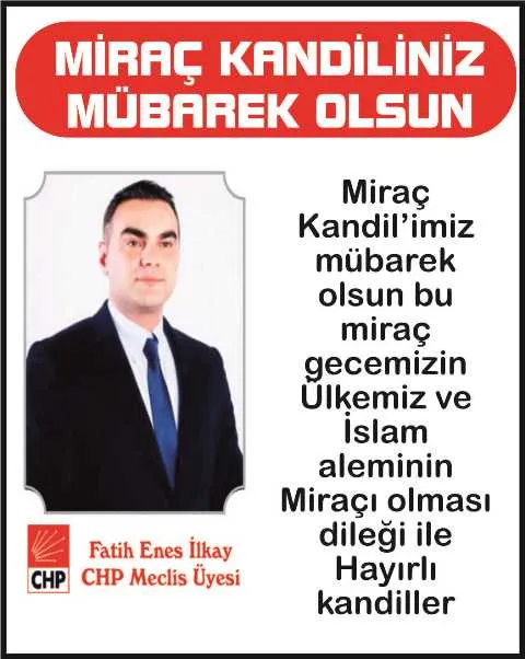 CHP Sakarya Büyükşehir Belediye Meclis üyesi iş insanı Fatih Enes İlkay yayınladığı Miraç Kandili mesajında şu sözlere yer verdi.