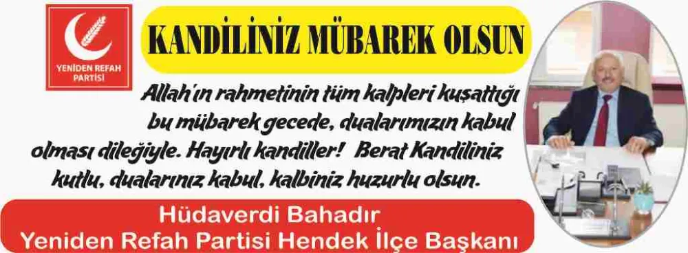 Yeniden Refah Partisi İlçe Başkanı Hüdaverdi Bahadır Berat Kandili mesajı yyaınladı.