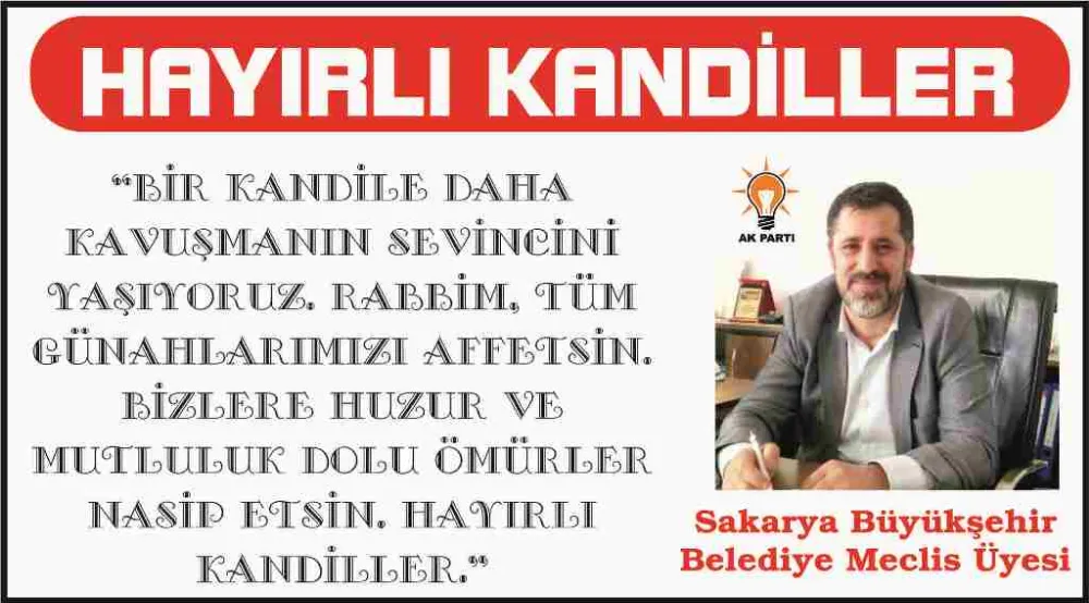 Hendek Belediyesi Cumhur İttifakı Sakarya, Hendek meclis üyesi ve iş insanı Ali Kemal Sofu İslam Aleminin Berat Kandilini tebrik etti.
