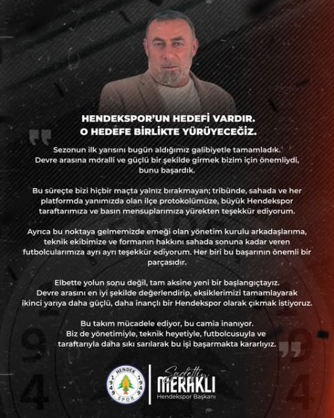 Güzide ekibimiz Hendekspor yönetimi aldığı akılcı kararla ilk yarı içerisinde hoca değişikliğine gitti. Doğru bir karardı ve bugün ne kadar doğru bir karar olduğunu aldığımız sonuçlarla ortada. Tebrikler yönetim tebrikler hocam.