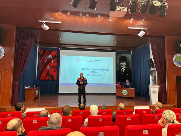 Ticaret Merkezi Konferans Salonu’nda gerçekleştirilen eğitimde, olası afetlere karşı hazırlık bilincinin artırılması hedeflendi.