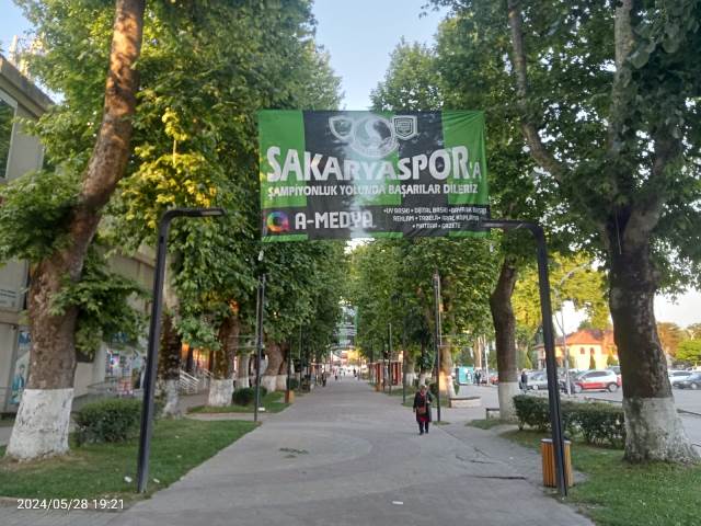 Şehrimizin takımının yarın Adanaspor sahasında karşılaşacağı FK BODRUMSPOR-SAKARYASPOR müsabakası öncesinde ilçe merkezi takımımıza destek veren söylemlerin bulunduğu bayraklarla süslendi.