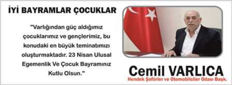 Hendek Şoförler ve Otomobilciler Odası Başkanı Cemil Varlıca 23 Nisan Ulusal Egemenlik ve Çocuk Bayramını tebrik etti.