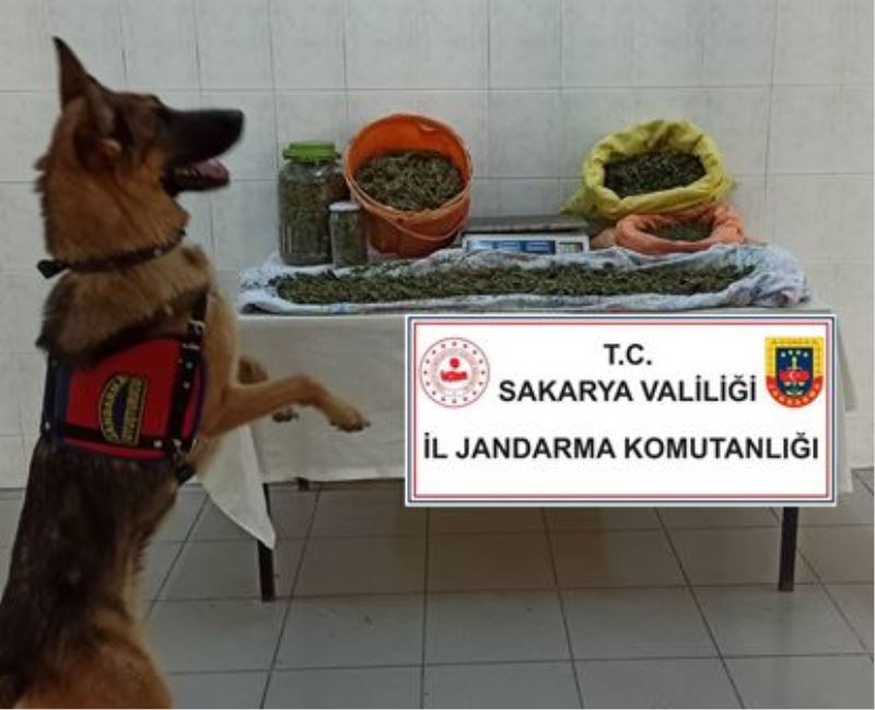 Hendek Jandarması, Şeyhler Mahallesi'nde N. G.isimli şahsın uyuşturucu veya uyarıcı madde imal ticareti yaptığına dair alınan duyum üzerine KOM Şb. Md.lüğü, Hendek İlçe J.K.lığı ve Jandarmanın gözü gibi baktığı Narkotik Köpek Unsuru ekiplerince şahsa ait ev ve eklentilerinde yapılan arama neticesinde;