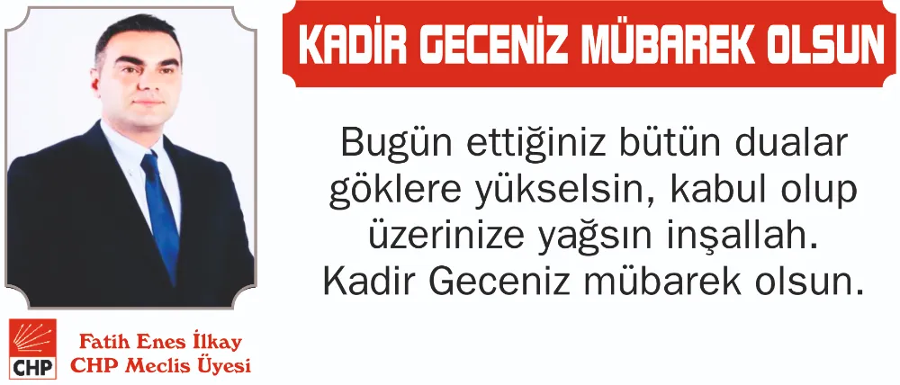 İş insanı ve CHP Hendek Belediye Meclisi grup sözcüsü fatih Enes İlkay yayınladığı mesaj ile İslam Aleminin mübarek Kadir Gecesini tebrik etti.