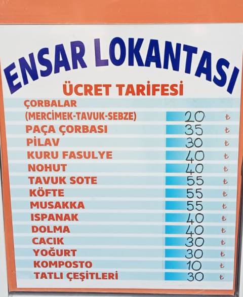 Ülkemizdeki enflasyona, yaşanan hayat pahalılığına rağmen hem yemek kalitesinden ödün vermiyor, yaşanan hayat pahalılığının arkasına sığınarak kafasına göre zam yapmıyor. Oysa ilçemizde aynı meslek dalında hizmet veren bazı işletmeler yeni yılı da fırsat bilerek zam yapmaktan geri durmuyorlar. Kaldı ki kaçıncı sınıf lokanta oldukları da görsel olarakta belirtilmemiş.