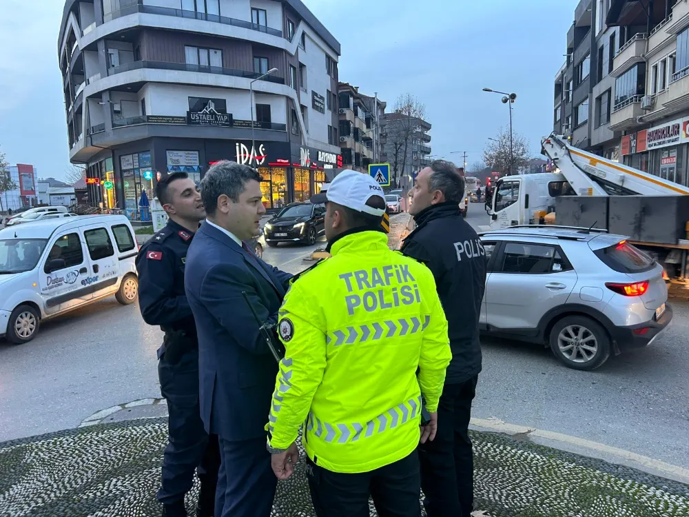 Kaymakam Gökpınar yoğun mesai harcayan trafik ekiplerine teşekkür etti ve görevlerinde başarılar dileyerek farklı bölgelerde incelemelerini sürdürdü.